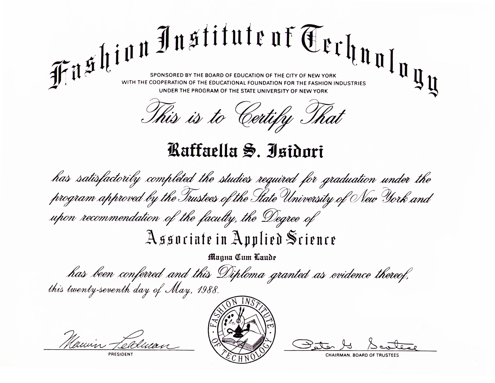 1988 - Associate in Applied Science | Photography | FIT